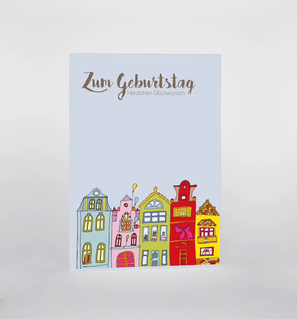GRUßKARTE IM A6 FORMAT AUF FARBIGEM KARTON GEDRUCKT. MIT FARBLICH PASSENDEM KUVERT.
