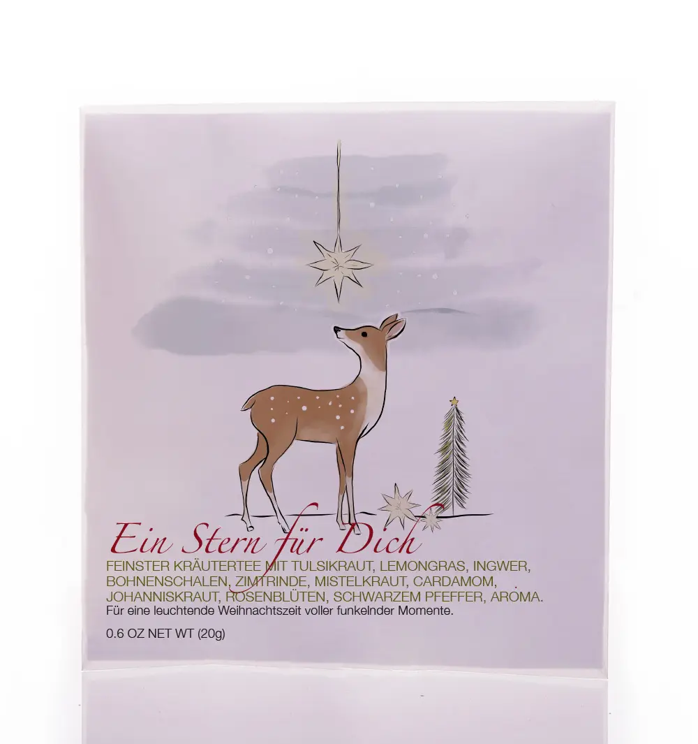 Eine feine Kräutermischung aus Tulsikraut, Lemongras, Ingwerstücken, Bohnenschalen, Zimtrinde, Mistelkraut, Cardamom, Johanniskraut, Rosenblüten, schwarzer Pfeffer, Aroma. Grapefruit-Orange-Geschmack.