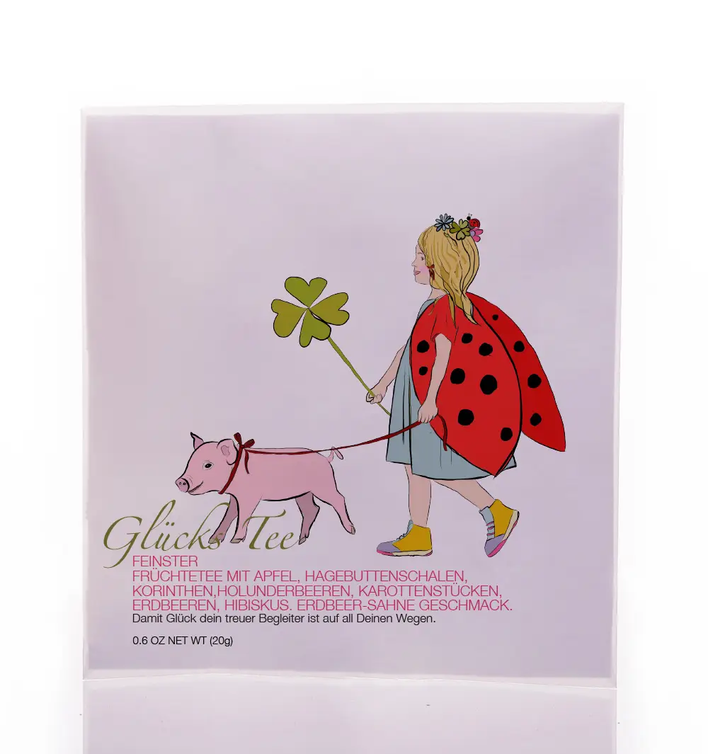 FEINSTER FRÜCHTETEE MIT HIBISKUS, HAGEBUTTEN, KORINTHEN, APFEL, BLAUBEEREN, ERDBEEREN. ERDBEER – SAHNE GESCHMACK.