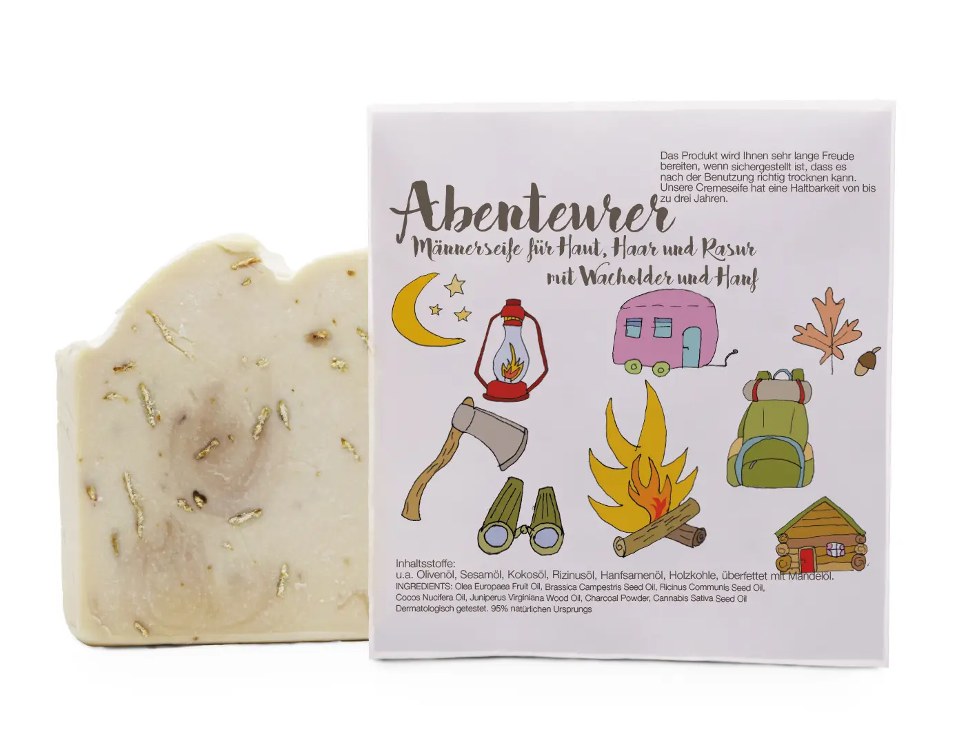 Unsere Seifen haben eine optimale, belebende und nährende Wirkung. Regelmäßig die nur leicht schäumende Cremeseife sanft in die Haut einmassieren. Das Produkt wird Ihnen sehr lange Freude bereiten, wenn sichergestellt ist, dass es nach der Benutzung richtig trocknen kann. Unsere Cremeseife hat eine Haltbarkeit von bis zu drei Jahren.