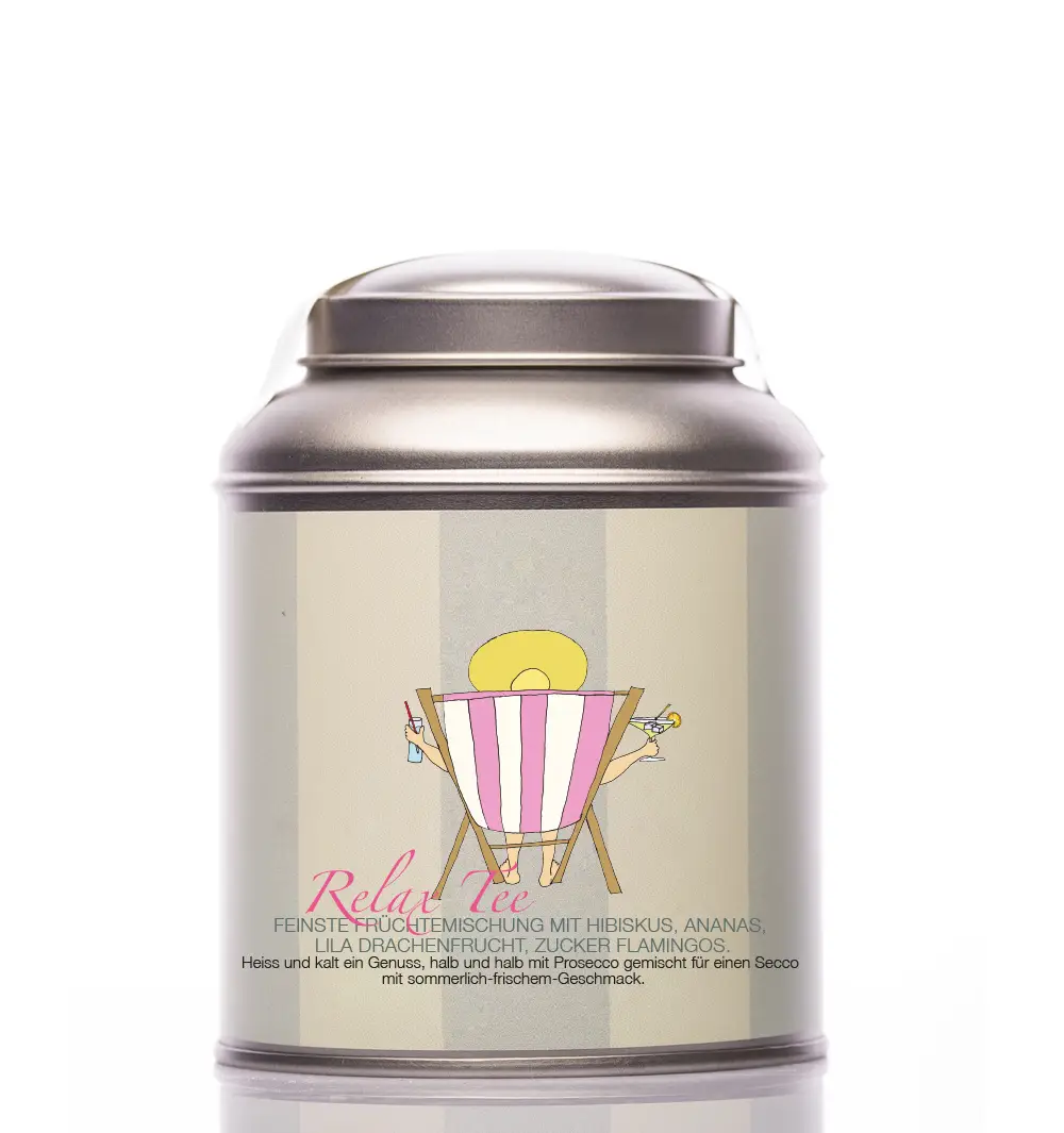FEINSTE FRÜCHTEMISCHUNG MIT HIBISKUS, ANANAS, LILA DRACHENFRUCHT, ZUCKER FLAMINGOS.